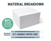 Our Dyestar premium blank white paper cards are CR80 (credit card) size and 480 micron thickness.
